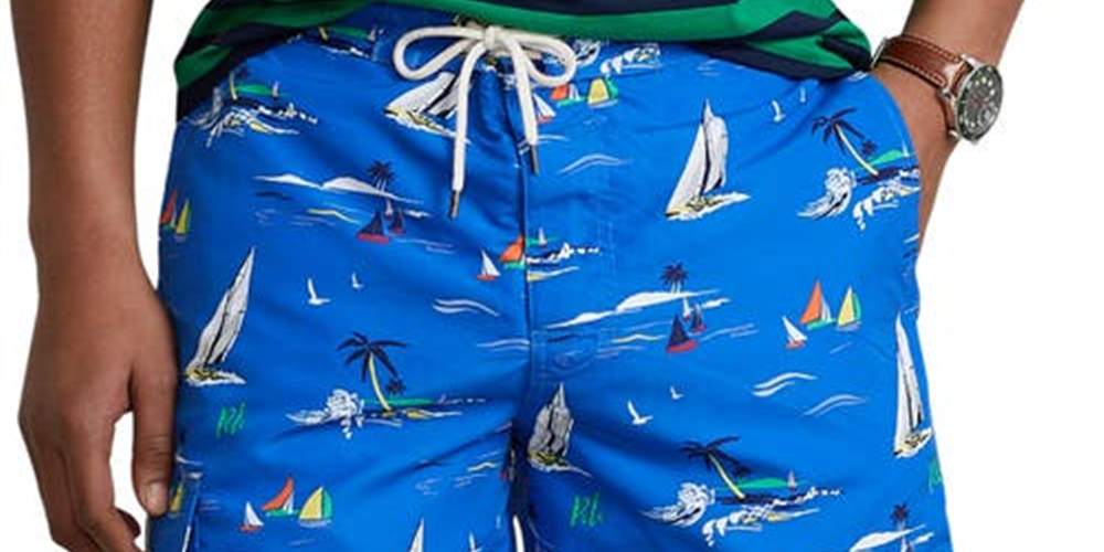 Polo Ralph Lauren Men's Recycled Polyester Print Swim Trunks Blue Size XX-Large