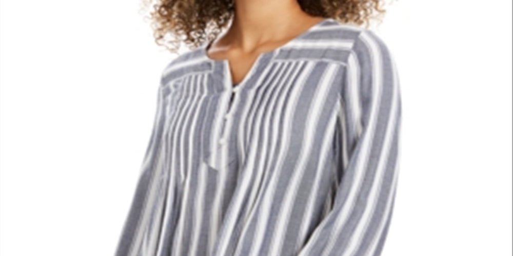 Style & Co Women's Striped Pintucked Top Blue Size X-Small