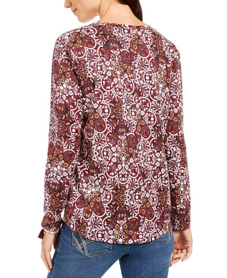 Hippie Rose Women's Printed Button Trim Top White Size Medium