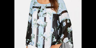 Alfani Women's Printed Angel-Sleeve Top Blue Size Large
