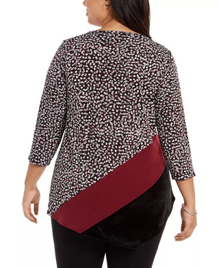 Alfani Women's Printed & Velvet Asymmetrical Top Black Size 2X