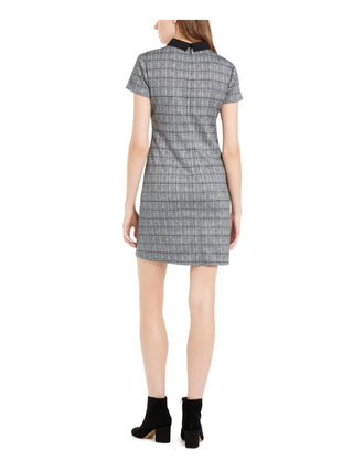 Maison Jules Women's Rhinestone Zippered Metallic Short Sleeve Collared Short Evening Sheath Dress Black Size Small