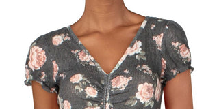 Ultra Flirt Women's Waffle Cinched Pullover Top Gray Size Large