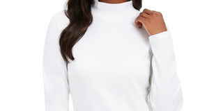 Karen Scott Women's Petite Long-Sleeve Mock-Neck Cotton Top White Size Petite X-Large