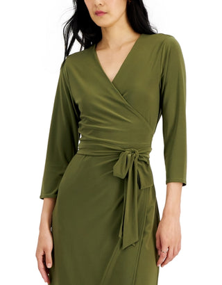 Alfani Women's V Neck Wrap Dress Green Size Medium