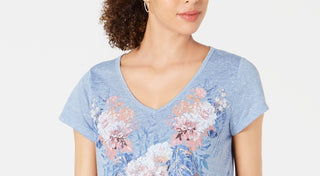 Style & Co Women's Graphic-Print Top Glitter Bouquet Size Petite Medium