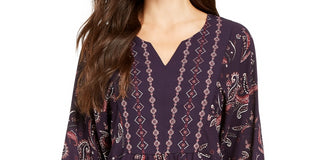 Style & Co Women's Printed Handkerchief Hem Peasant Top Purple Size Medium