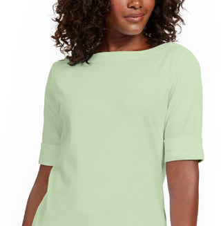 Karen Scott Women's Cotton Boat Neck Top Green Size X-Large