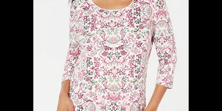 Karen Scott Women's Petite Printed Scoop-Neck Top White/ Flowers Size PS