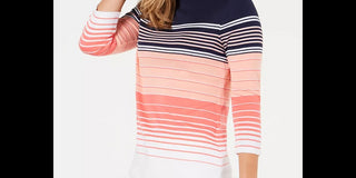 Charter Club Women's Petite Pima Cotton Button-Shoulder Striped Top Pink Size PL