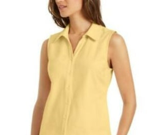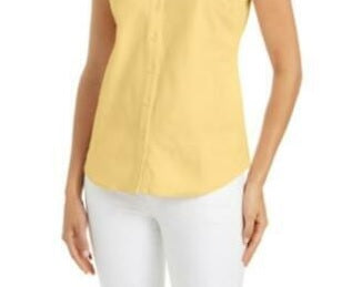Charter Club Women's Cotton Pique Sleeveless Shirt Yellow Size 12