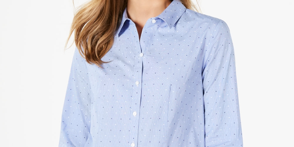 Charter Club Women's Cotton Printed Button Front Top Blue Size 12