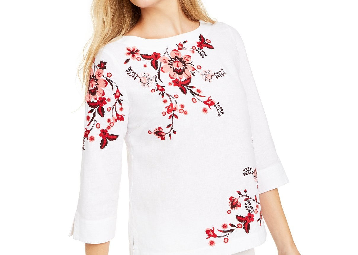 Charter Club Women's Embroidered Split-Sleeve Top White Size Medium