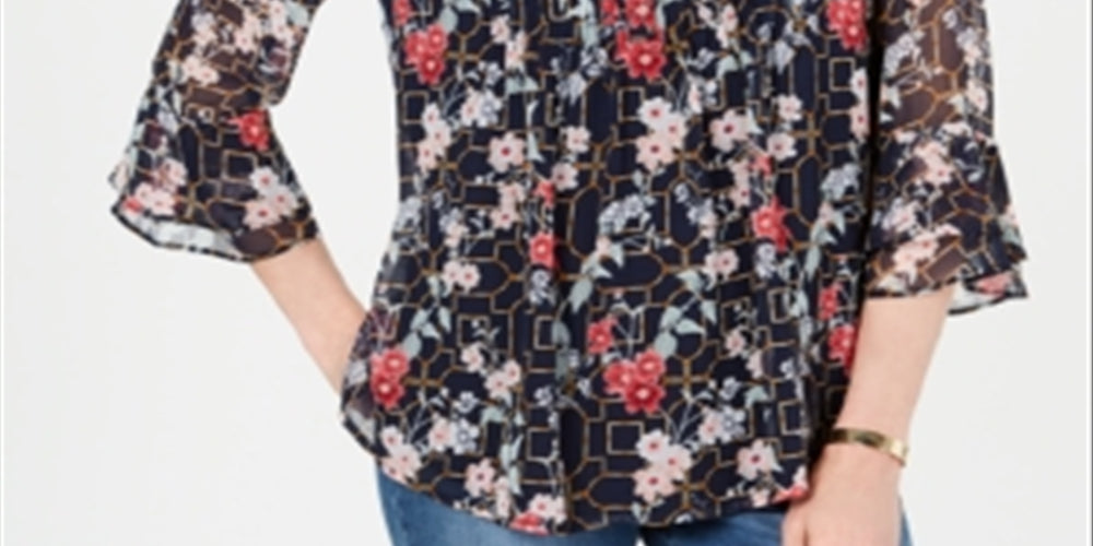 Charter Club|style; top|occasion; cocktail|size; s|material; polyester|color; navy|floral