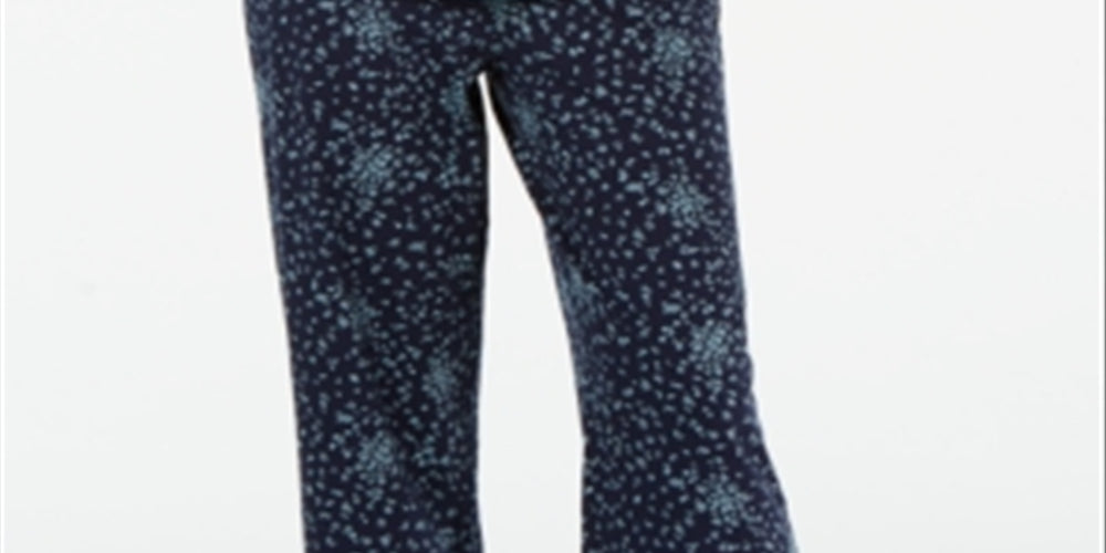 Charter Club Women's Floral Print Cotton Knit Pajama Pants Dark Blue Size S