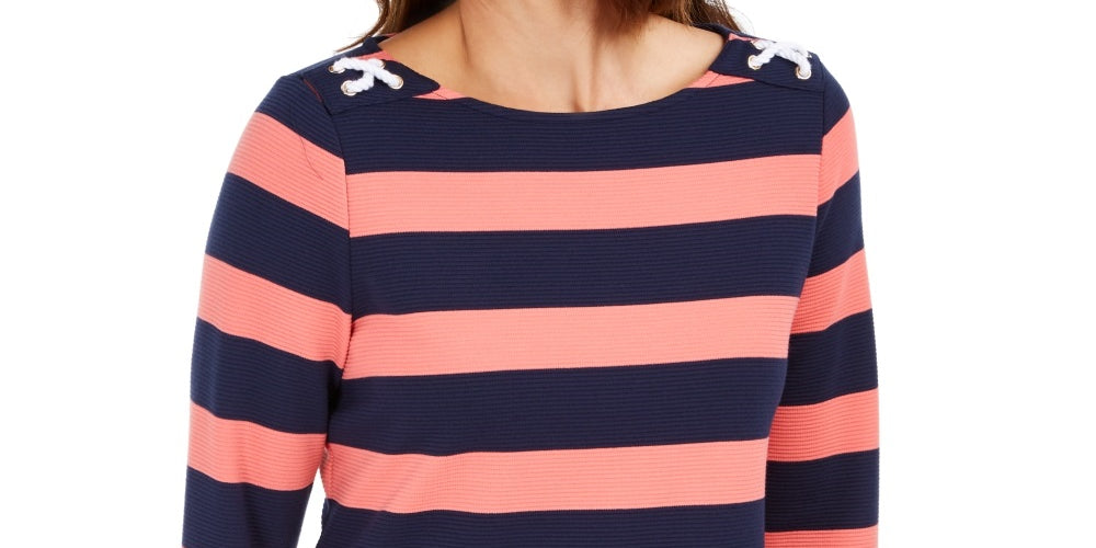 Charter Club Women's Grommet Trim Striped Top Red Size X-Small