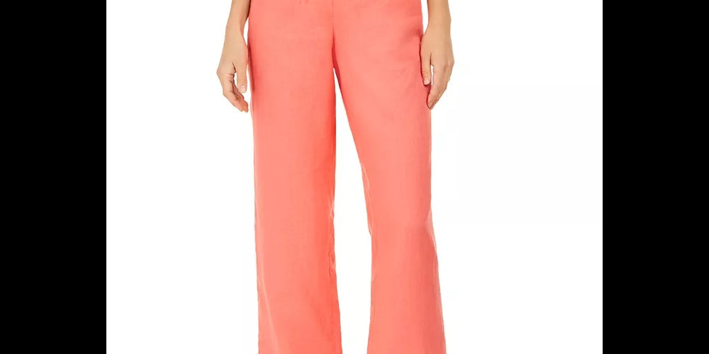 Charter Club Women's Linen Drawstring Waist Pants Green Size Medium