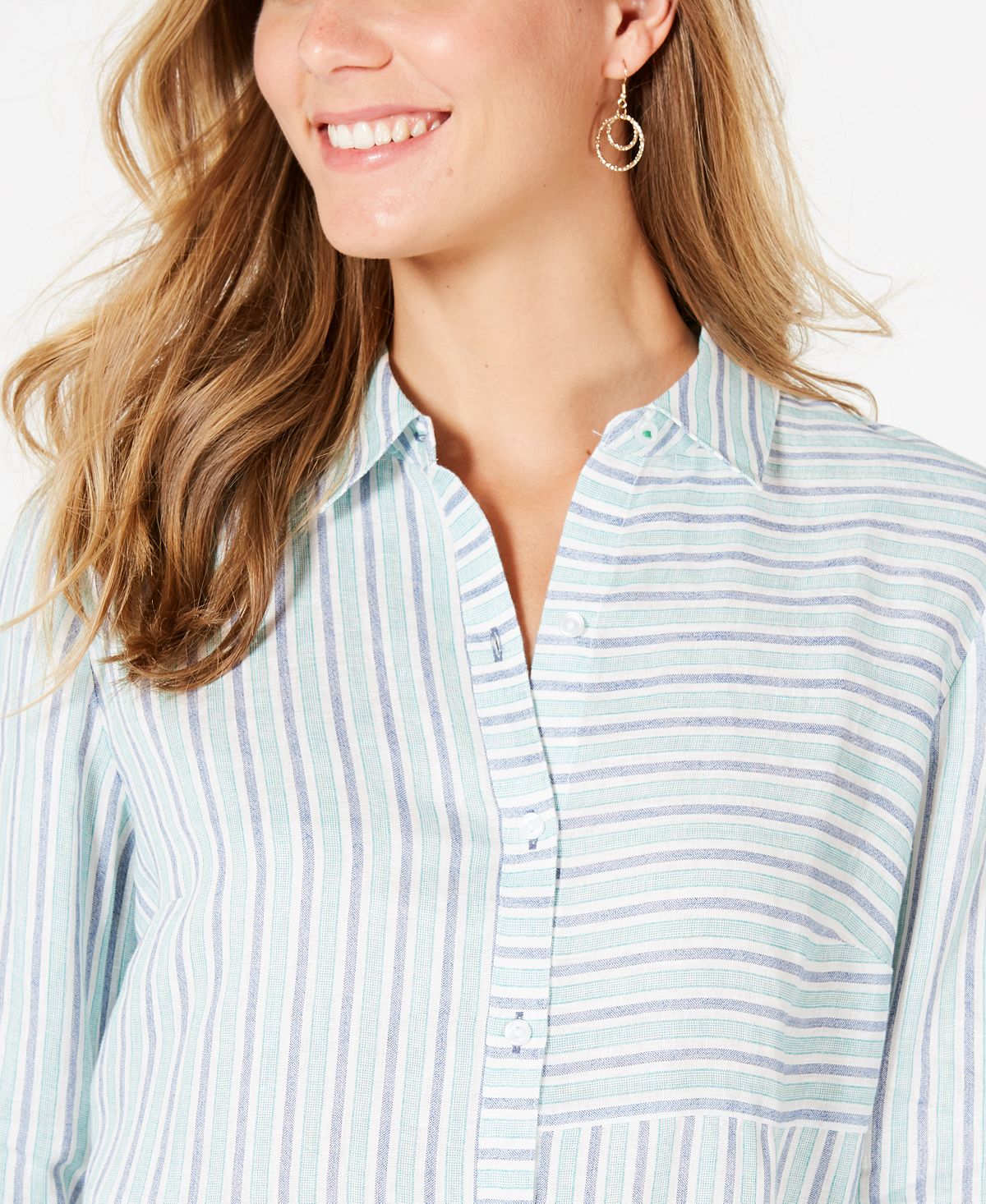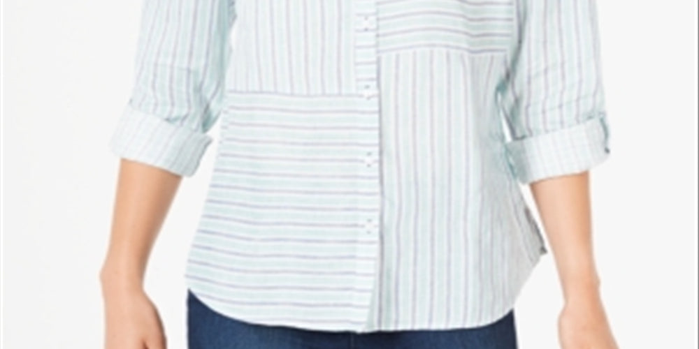 Charter Club Women's Linen Striped Cuffed Shirt White Size XX-Large