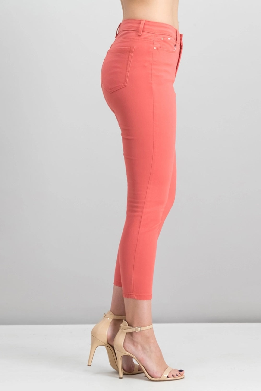 Mid rise; skinny fit through hips and thighs; skinny leg cropped at ankle|Approx. inseam: 26"|Zipper and button closure; belt loops|Classic five-pocket styling