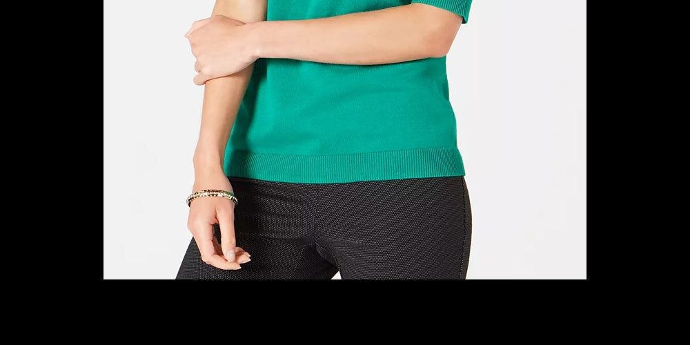 Charter Club Women's Petite Elbow-Sleeve Sweater Green Size PXL