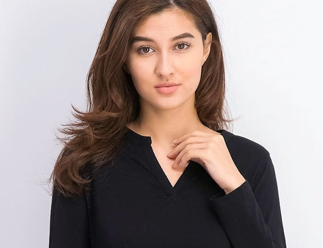 Designed to fit and flatter 5'4 and under frame|Split neckline|Short dolman sleeves|Polyester|Machine washable