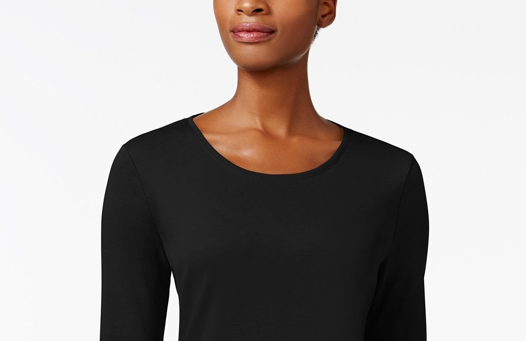Charter Club Women's Pima Cotton Long-Sleeve Top Black Size Large