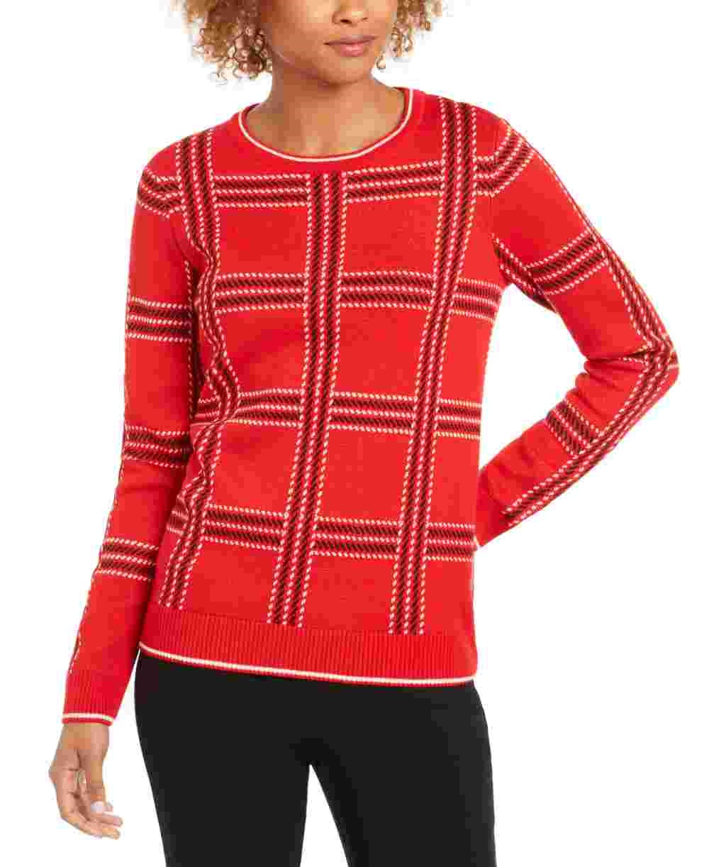 Charter Club Women's Printed Long Sleeve Crew Neck Blouse Top Red Size Petite Small