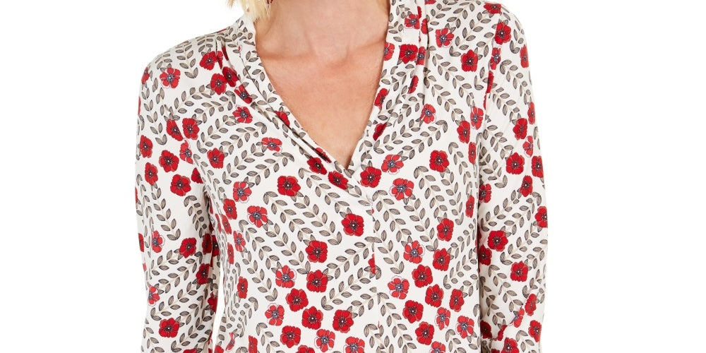 Charter Club Women's Printed V-Neck Top White Size Medium