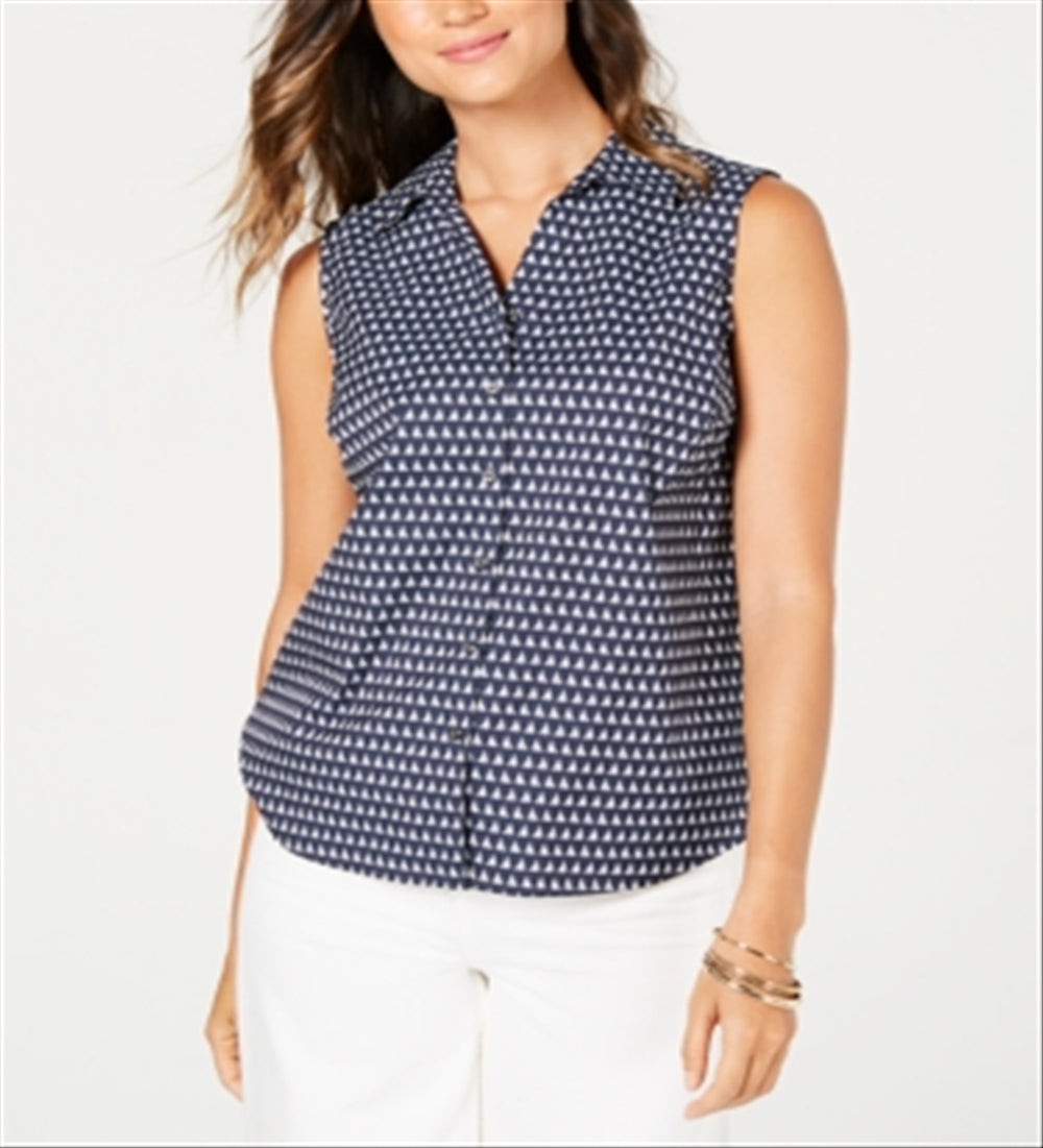 Charter Club Women's Sailboat Print Shirt Blue Size 10 Petite
