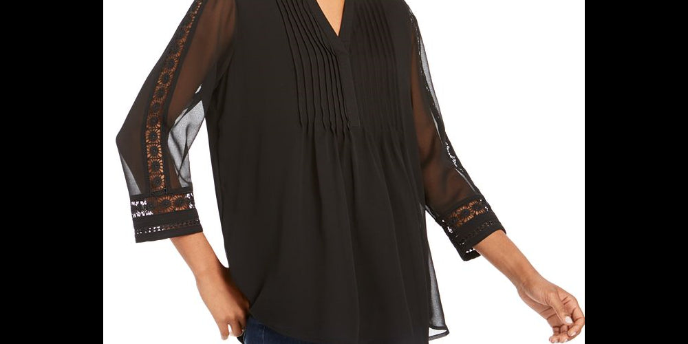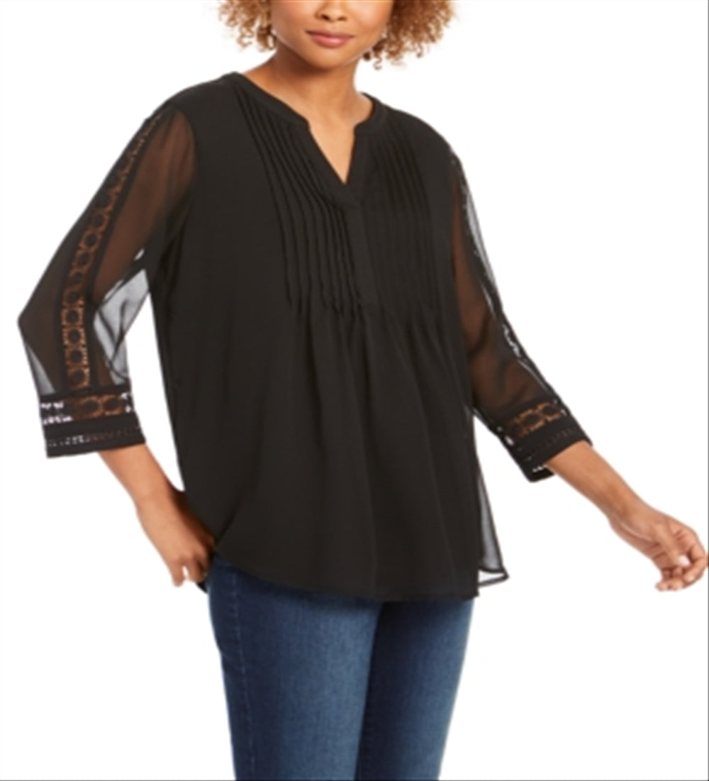 Charter Club Women's Solid Knit Pintuck Top -Black Size S