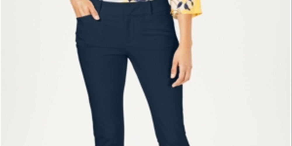 Charter Club Women's Solid Newport Slim Leg Pants Blue Size 8 Petite