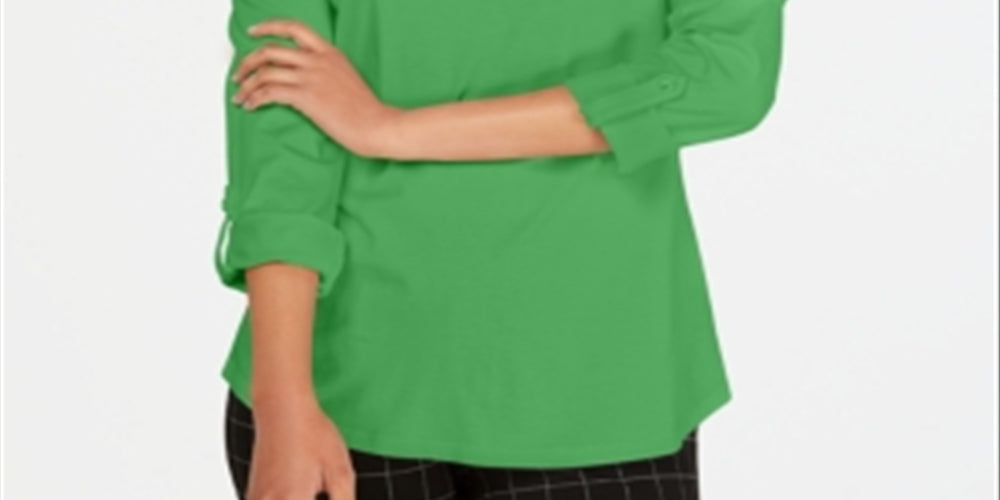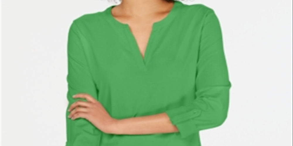 Charter Club Women's Supima Cotton Split Neck Top Green Size S