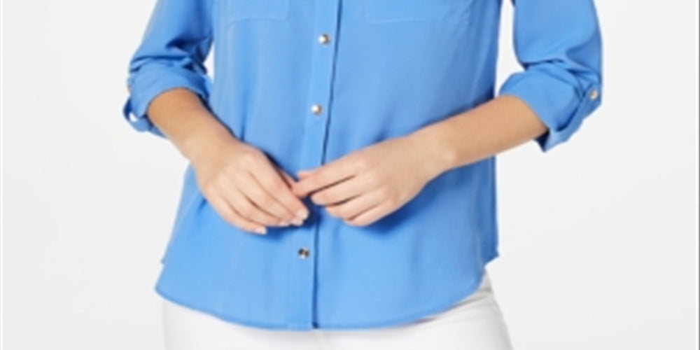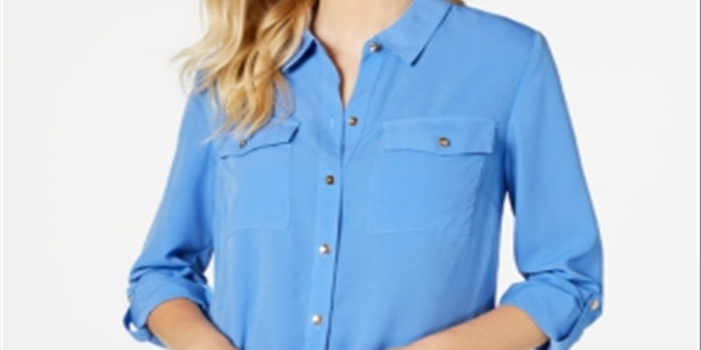 Charter Club Women's Two Pocket Shirt Blue Size X-Large
