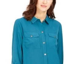 Charter Club Women's Two Pocket Shirt Green Size Medium