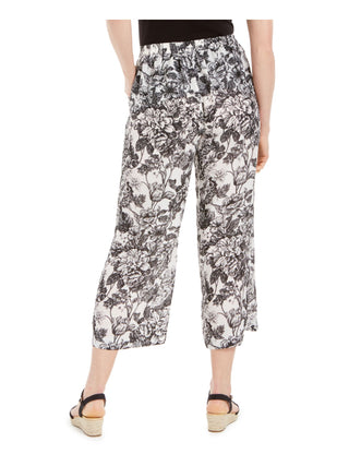 Charter Club Women's Pocketed Cropped Pull on Mid rise Printed Wide Leg Pants White Size XX-Large