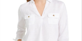 Charter Club Women's Woven Drawstring Tie-Cuff Top White Size Large