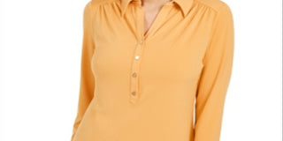 Charter Club Women's Knit Polo Shirt Yellow Size Small