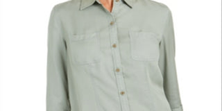 Charter Club Women's Woven Solid Tencel Shirt Green Size Medium
