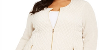 Charter Club Women's Quilted Zip up Sweater Brown Size 3X