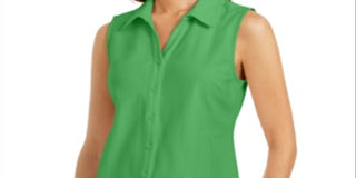 Charter Club Women's Cotton Pique Sleeveless Shirt Green Size 6