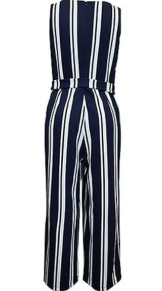 Charter Club Women's Stretch Zippered Belted Striped Sleeveless V Neck Party Wide Leg Jumpsuit Blue Size X-Large