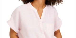 Charter Club Women's Linen Tie Front Button Up Shirt Pink Size Large