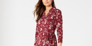 Charter Club Women's Mixed Print Henley Top Red Size Petite Small
