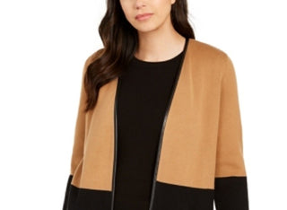 Charter Club Women's Milano Cotton Colorblocked Cardigan Brown Size Large