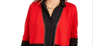 Charter Club Women's Milano Cotton Colorblocked Cardigan Red Size X-Small