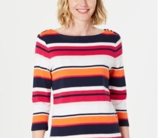 Charter Club Women's Cotton Striped Boat Neck Top Pink combo Size Petite XL