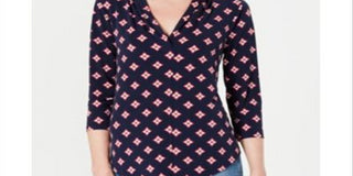 Charter Club Women's 3/4 Sleeve Printed Top Red Size Large