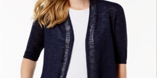 Charter Club Women's Pointelle Knit Cardigan Blue Size Medium
