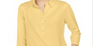 Charter Club Women's Supima Cotton 3/4-Sleeve Polo Yellow Size XS