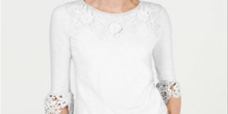 Charter Club Women's Bell Sleeve Embroidered Top White Size Petite S